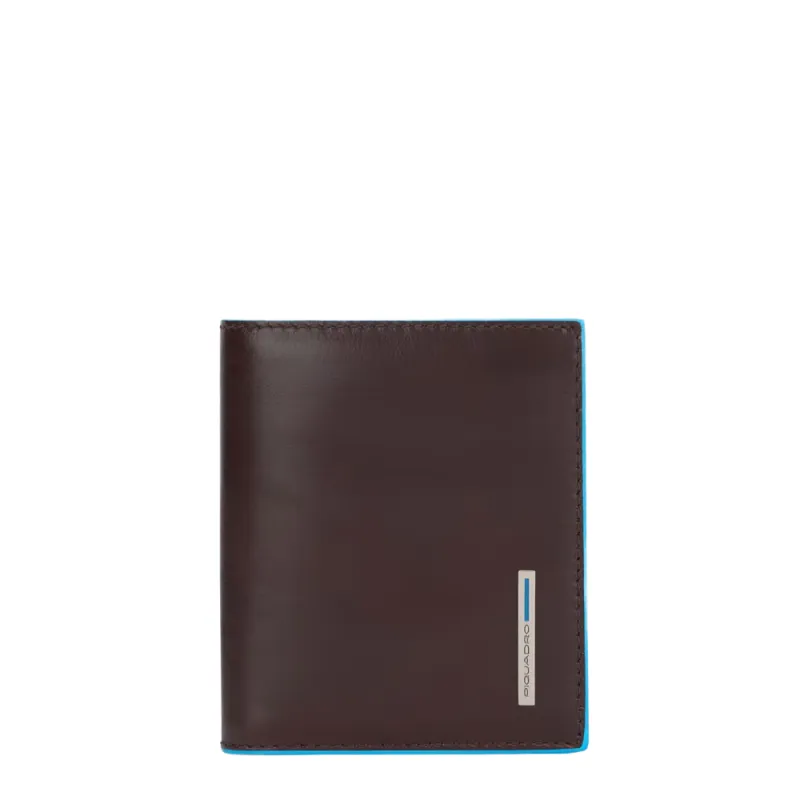 Kleine Herrengeldbörse aus der Blue Square-Kollektion von Piquadro aus Naturleder, mit doppeltem Geldscheinfach, Kreditkartenfächern mit Fälschungssicherung und einem Münzfach.