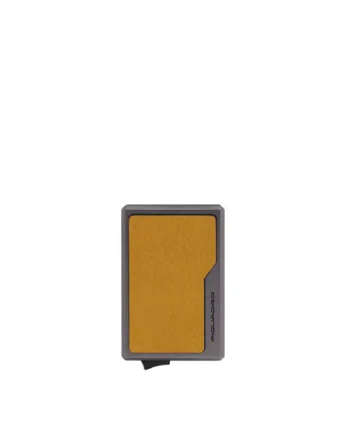Piquadro Black Square MagSafe Kartenetui aus Aluminium und Leder, gelb