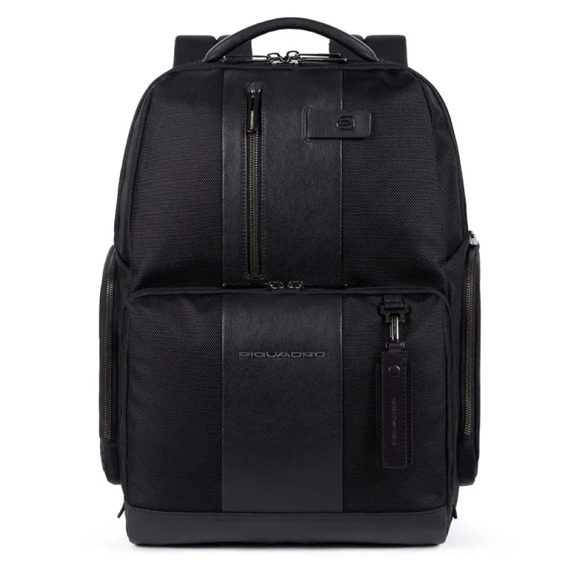 Piquadro Großer Rucksack aus regeneriertem Stoff und Leder Schwarz