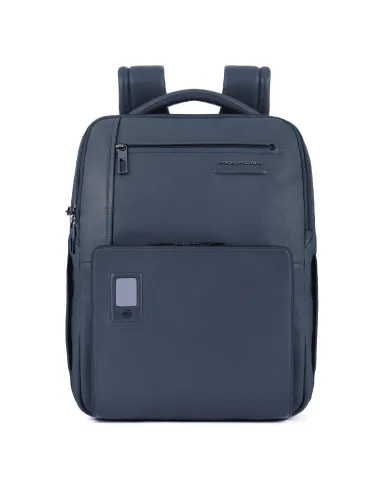 Personalisierbarer Laptoprucksack aus der Akron-Kollektion von Piquadro, aus Naturleder, mit iPad®-Fach, Diebstahlsicherung, Flaschen- oder Schirmtasche und RFID-Blocker.