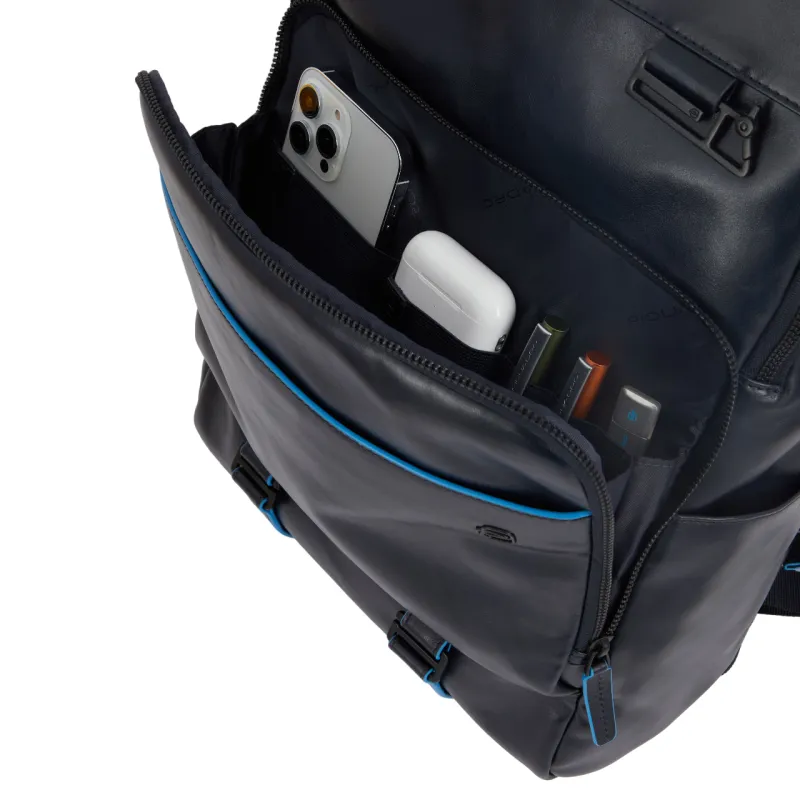 Piquadro B2 Revamp 15,6" Computer-Rucksack aus Leder, blau