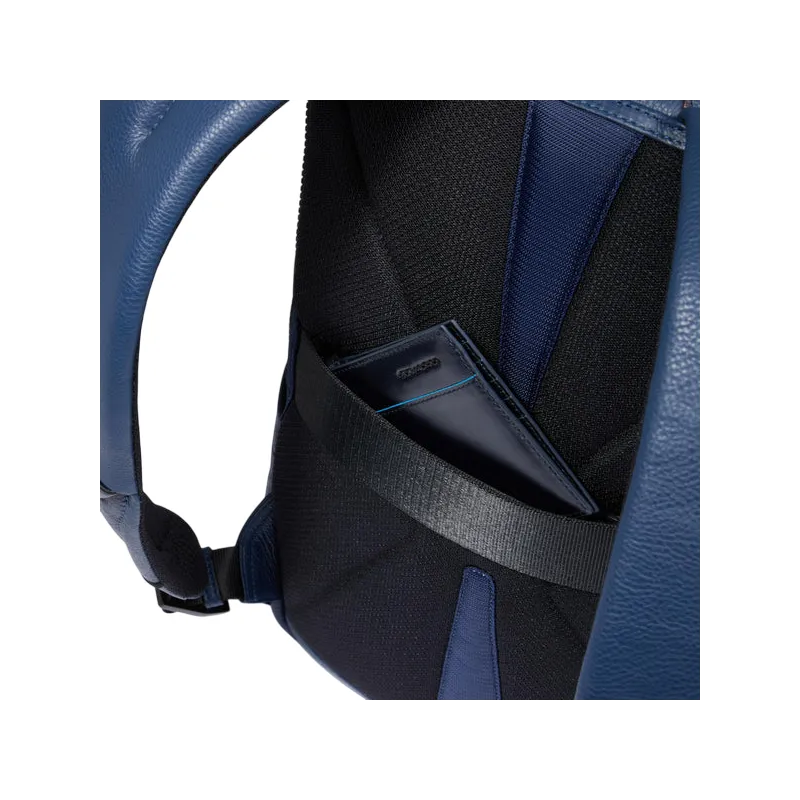 Piquadro Than mittelgroßer Computer-Rucksack aus Leder, blau