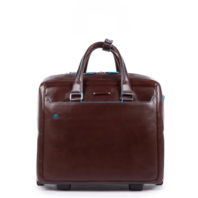 Pilotenkoffer mit Laptop-Fach aus der Blue Square-Kollektion von Piquadro, aus Naturleder, mit Hauptfach mit Reißverschluss, Vordertasche, Trolley-Befestigungssystem, verstell- und abnehmbarem Schulterriemen.