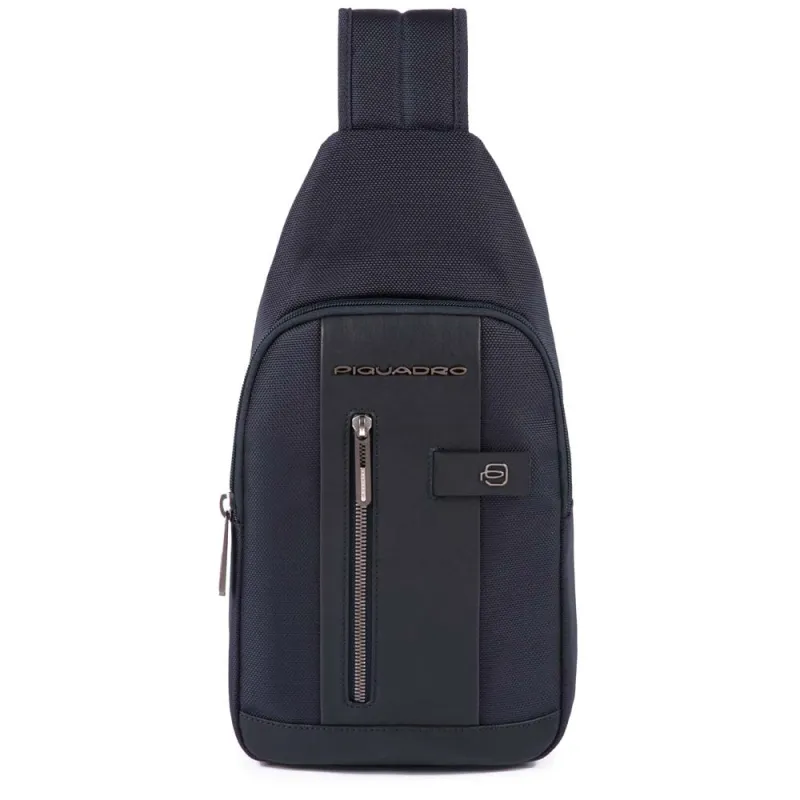 Umhängetasche aus der Brief-Kollektion aus recyceltem Stoff und Naturleder, ausgestattet mit einem komfortablen Fach mit Reißverschlussöffnung, Innenorganisation für Smartphones und Zubehör, Fronttasche mit Reißverschluss.