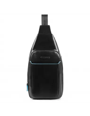 Eine Umhängetasche aus der Blue Square Kollektion von Piquadro, aus Naturleder, mit Reißverschluss, Vordertasche mit Reißverschluss, iPad® Fach innen.