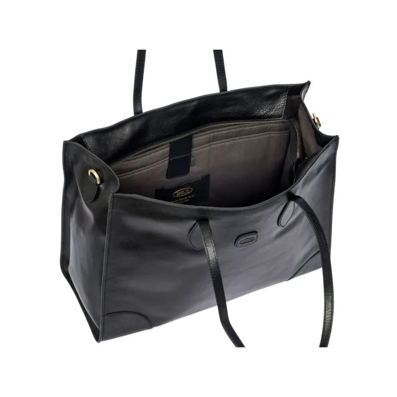 Bric's Volterra Shopping Bag aus weichem Leder mit Laptop und Tablet Faecher, schwarz