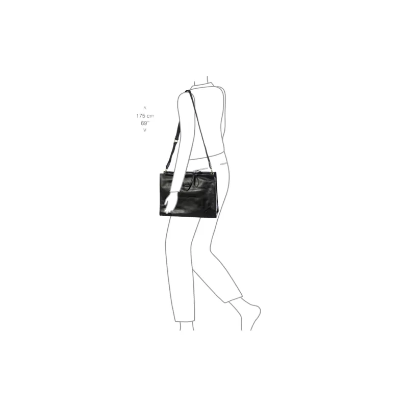 Das Innenfutter aus weichem Nubuk bietet spezielle Faecher fuer Laptop und Tablet, sodass eine sichere und gut organisierte Aufbewahrung gewaehleistet ist. Der obere Reissverschluss sorgt fuer Schutz der persoenlichen Gegenstaende. Die doppelten Henkel erlauben das Tragen in der Hand oder bequem ueber der Schulter. Die abnehmbare Trageriemen aus Stoff bietet zusaetzliche Flexibilitaet.