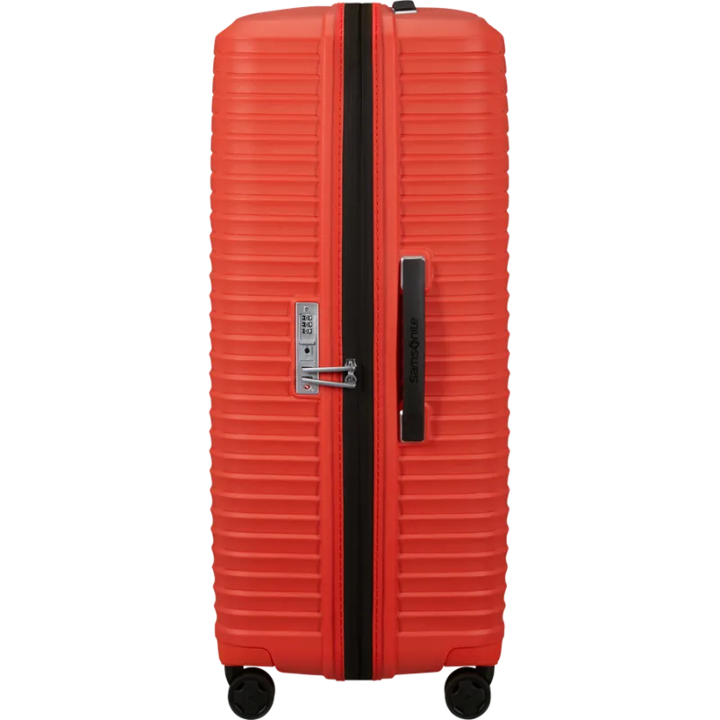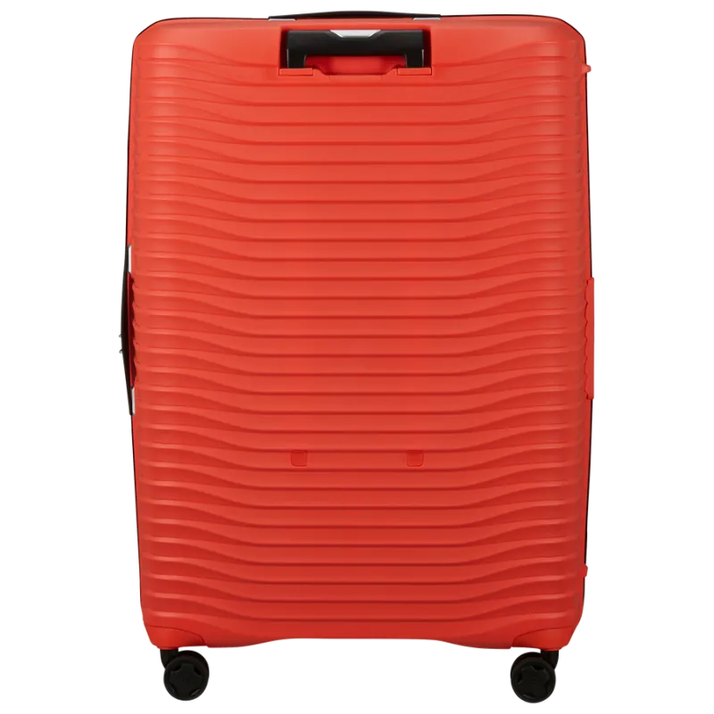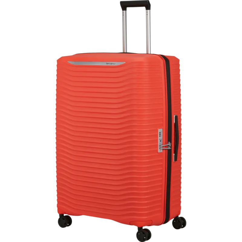 Leichter und strapazierfähiger, extragroßer, erweiterbarer Trolley aus der Upscape-Kollektion von Samsonite, aus 100 % Polypropylen, ausgestattet mit Tragegriffen oben und an den Seiten, Doppelfach mit organisierter Trennwand mit Reißverschlusstasche und Befestigungsgurten, Zahlenschloss und tsa-pflichtig für US-Reisen, 4-Rad-Schleppsystem, integriertes Adressetikett.