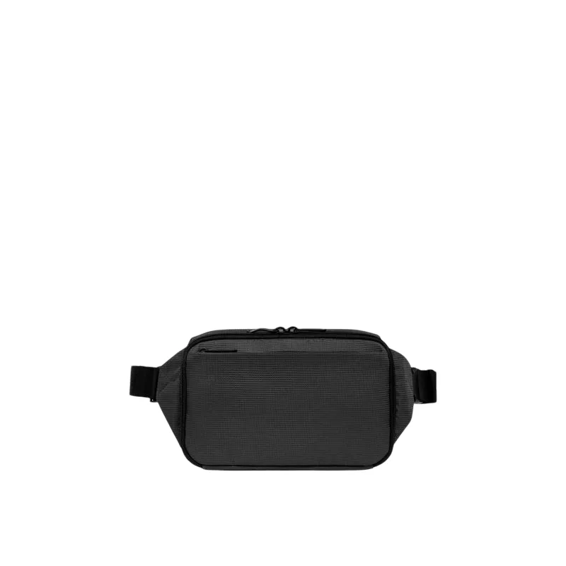 Piquadro PQ-Earth Gürteltasche aus Stoff und veganem Leder, schwarz