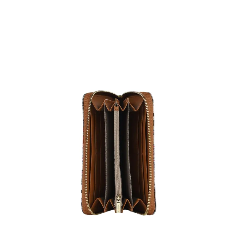 Mit einem umlaufenden Reißverschluss ausgestattet, bietet die Geldbörse vier Innenfächer, mehrere Kartensteckplätze und ein Münzfach mit Reißverschluss, um alles sicher und übersichtlich aufzubewahren.
