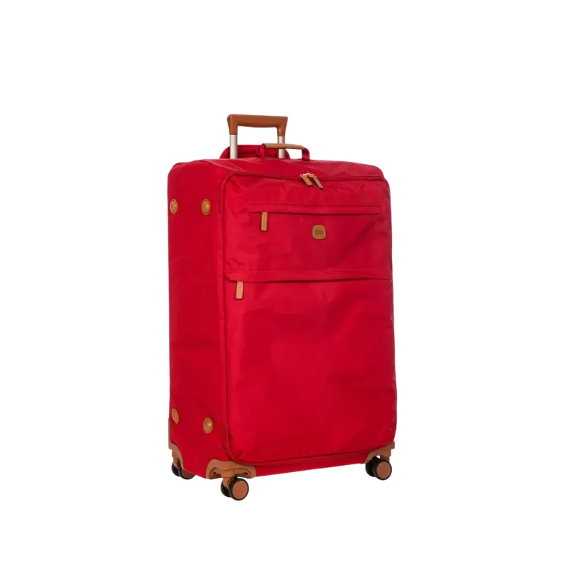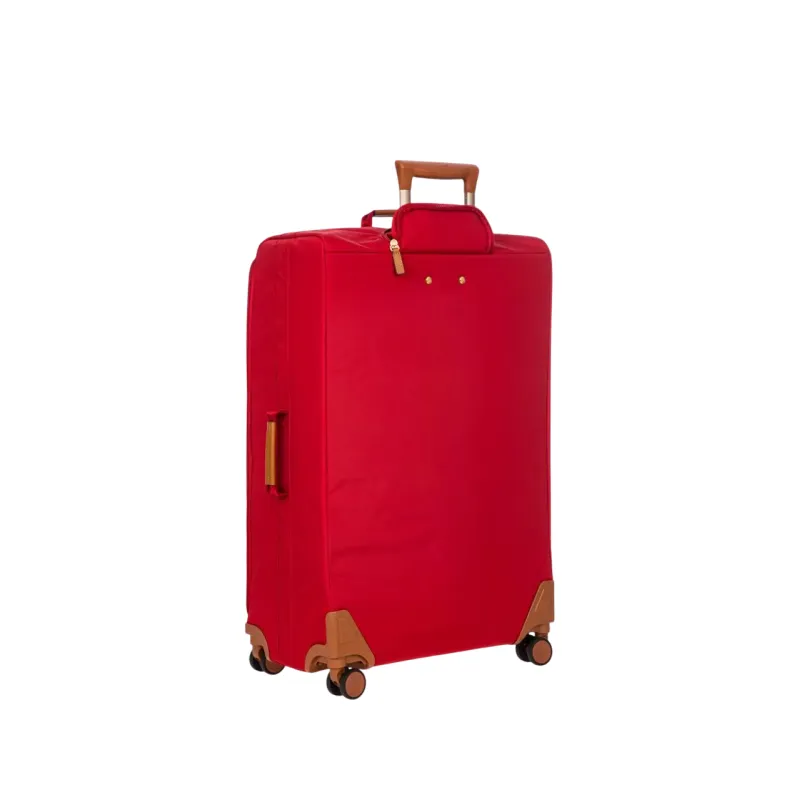 Trolley in der Größe XL (77 cm) aus der X-Collection von Brics, hergestellt aus strapazierfähigem, recyceltem Nylon und Lederbesatz, mit einer stabilen und leichten Struktur. Sie hat eine Hauptöffnung mit Reißverschluss, zwei Vordertaschen mit Reißverschluss, Innentaschen und Riemen für optimale Organisation. Die Räder sind schwenkbar, um eine einfache 360°-Bewegung zu gewährleisten, und sie sind versenkt, um die interne Kapazität des Wagens zu maximieren. Ausgestattet mit einem integrierten Adresshalter.