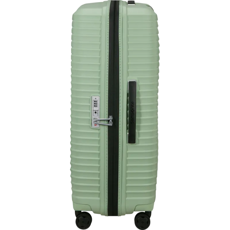 Leichter und strapazierfähiger großer Trolley aus der Upscape-Kollektion von Samsonite, aus 100 % Polypropylen, mit Erweiterungsmöglichkeiten, Griffen oben und an der Seite, doppeltem Innenfach mit Trennwand und Befestigungsgurten, Reißverschluss, Zahlen- und TSA-Schloss für US-Reisen erforderlich, 4-Rad-Trolley-Zugvorrichtung.