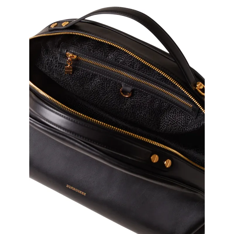 Borbonese Sexi Bag Medium Nappaleder & Goldbeschläge, schwarz