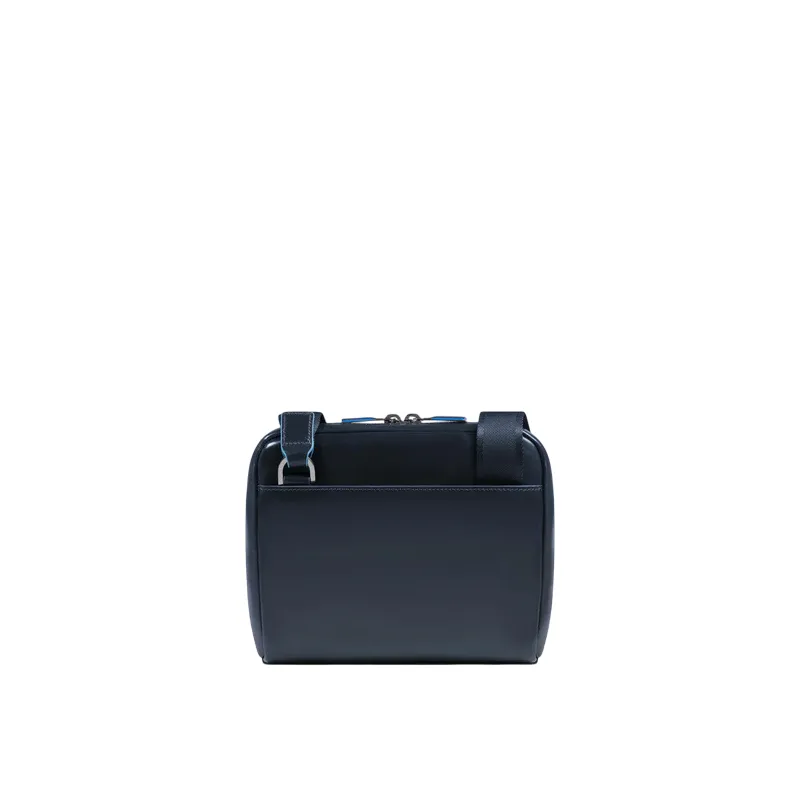 Piquadro Blue Square kleine horizontale Leder-Umhängetasche, blau