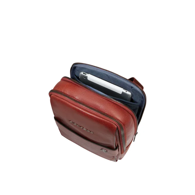 Piquadro Solm Herren iPad Mini Umhaengetasche aus Leder, brick