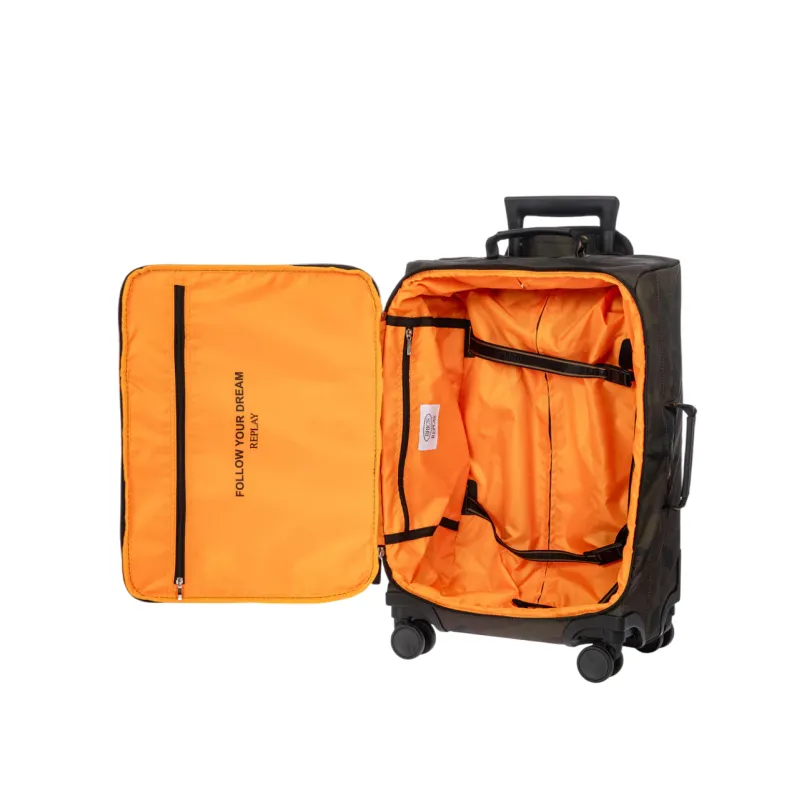Der Kabinen Trolley der Bric's Replay Kollektion vereint die Reisequalitaet von Bric's mit dem modernen Stil von Replay. Das wasserabweisende Recyclinggewebe sorgt fuer eine stabile und gleichzeitig sehr leichte Struktur. Der Trolley bietet alle wesentlichen Funktionen eines zuverlässigen Reiseartikels, veredelt durch stilvolle Details wie Farbkombinationen, kontrastierendes Innenfutter sowie personalisierte Elemente innen und außen.