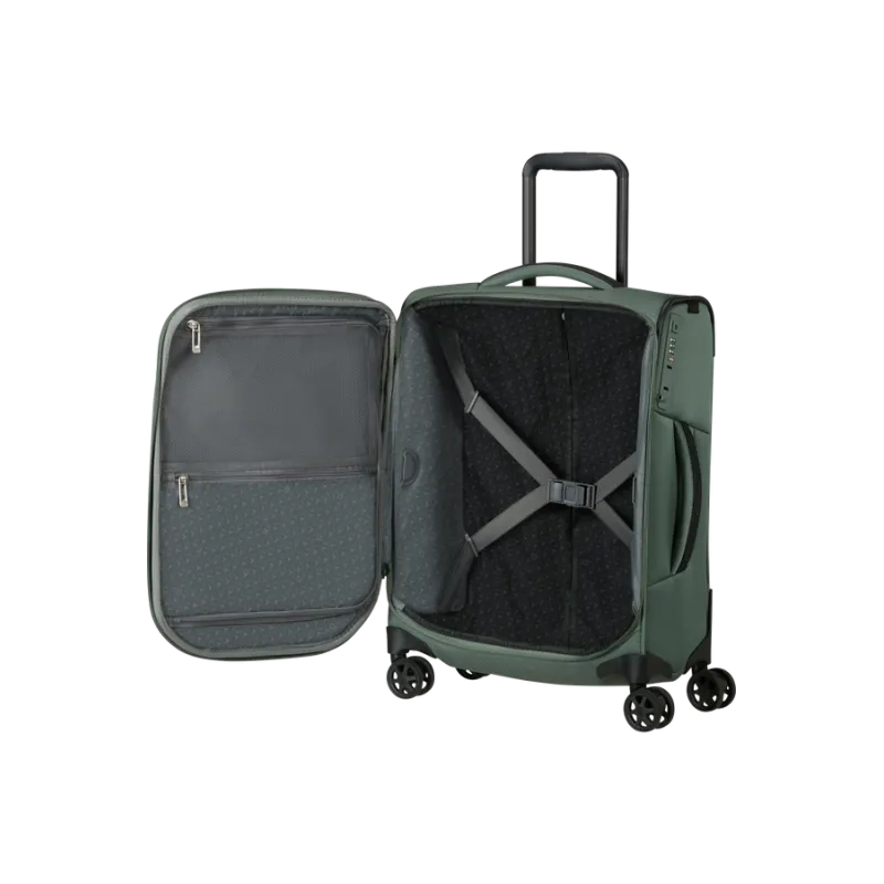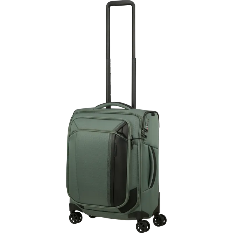 Kabinentrolley aus der Respark-Kollektion von Samsonite, aus robustem Recycling-Gewebe, mit großem Fach mit Reißverschluss, Kombinations- und TSA-Schloss, das für Reisen in die USA erforderlich ist, Vordertasche mit Reißverschluss.