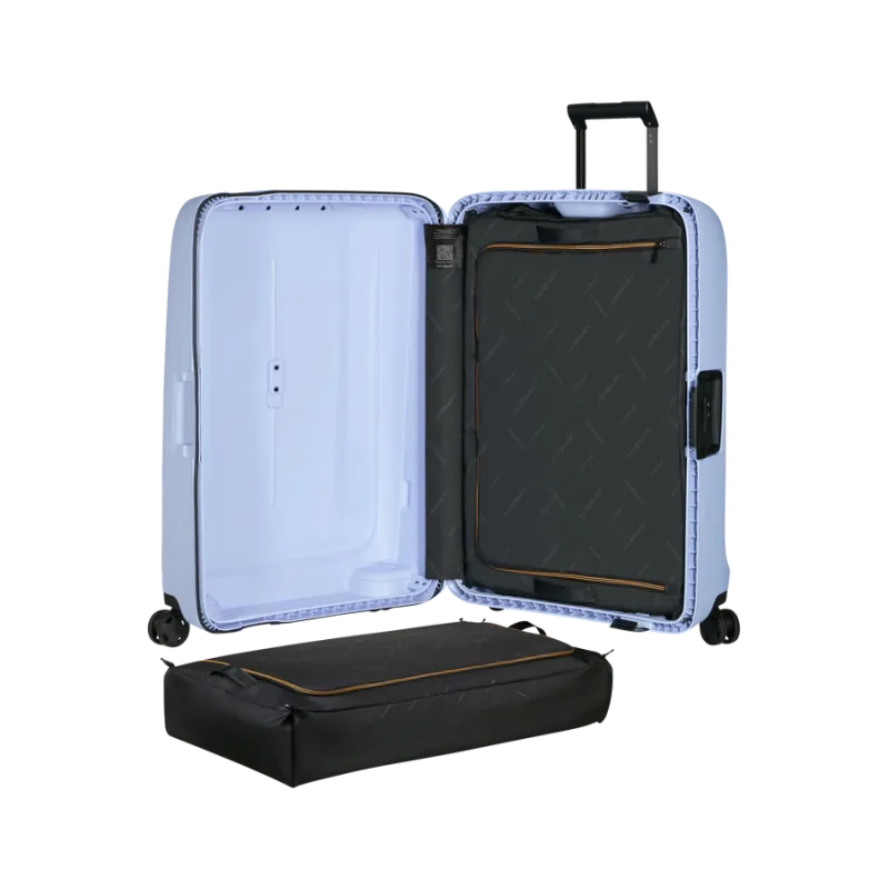 Die Essens-Kollektion von Samsonite ist absolut nachhaltig hergestellt. Die Schalen bestehen zu mindestens 70 % aus recyceltem Polypropylen, während das Innenfutter und die Innengurte aus 100 % recyceltem PET bestehen.