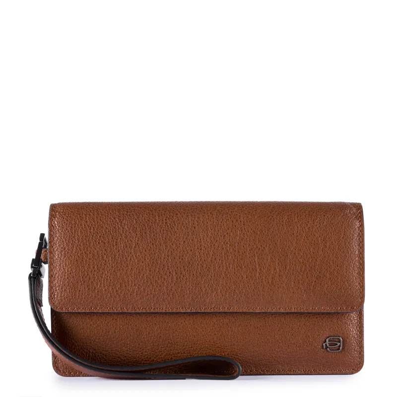 Handtasche aus der Kollektion Piquadro Black square, aus naturbelassenem pflanzlich gegerbtem Leder, mit abnehmbarem Griff, Überschlag und automatischer Knopföffnung, drei Innenfächern, 4 Fächern für Kreditkarten.
