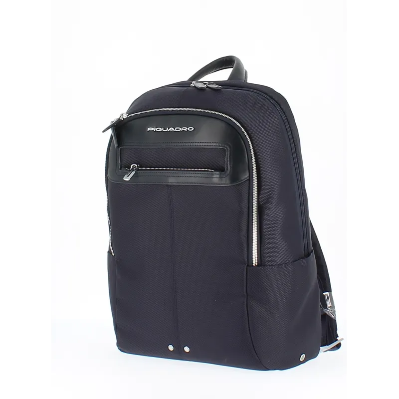 Kleiner Rucksack aus der Piquadro Link2-Kollektion, aus technischem Gewebe mit Wabenverarbeitung (besonders widerstandsfähiges und wasserdichtes Material) und Leder, ausgestattet mit einem Doppelfach mit Reißverschluss, eines davon mit PC-Halter und Tablet-Halter, Schlaufe hinten zur Befestigung zum Trolley, gepolsterter und atmungsaktiver Rücken, verstellbare Schultergurte.