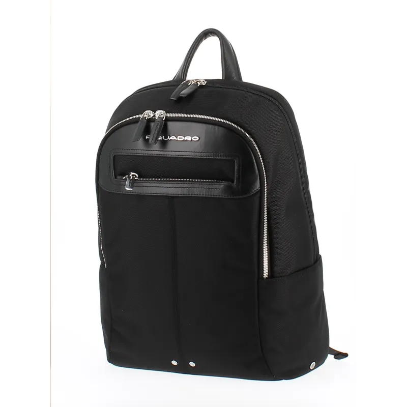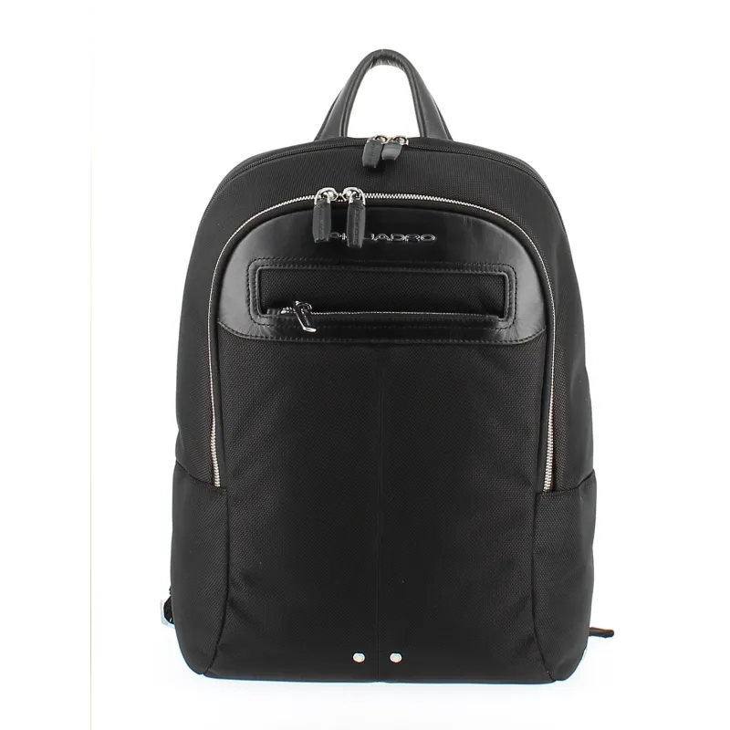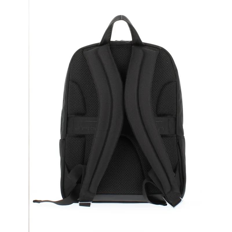 Kleiner Rucksack aus der Piquadro Link2-Kollektion, aus technischem Gewebe mit Wabenverarbeitung (besonders widerstandsfähiges und wasserdichtes Material) und Leder, ausgestattet mit einem Doppelfach mit Reißverschluss, eines davon mit PC-Halter und Tablet-Halter, Schlaufe hinten zur Befestigung zum Trolley, gepolsterter und atmungsaktiver Rücken, verstellbare Schultergurte.