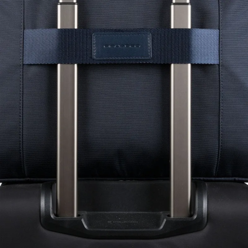 Aktentasche mit zwei Griffen aus der Mac-Beth-Kollektion von Piquadro, ausgestattet mit einem Doppelfach mit Reißverschlussöffnung, eines davon mit einem gepolsterten Fach für Computer und Tablet, verstellbarer und abnehmbarer Schultergurt, doppelte Fronttasche mit Reißverschluss, Rückenschlaufe zur Befestigung am Trolley.