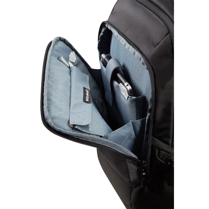 Zaino espandibile porta pc della collezione Cityscape di Samsonite,realizzato in nylon e poliestere con lavorazione a nido d'ape,completo di manico sulla parte superiore,spallacci e schienale imbottiti per rendere il trasporto particolarmente comodo,doppia tasca frontale con organizer interno,in più 2 tasche laterali di cui una dotata di uscita per cuffie. All'interno funzionale ed imbottito alloggio per pc da 17.3 pollici e porta tablet. Nella parte posteriore è dotato di passante per carrello del trolley,tutto questo con un rapporto qualità prezzo fantastico...