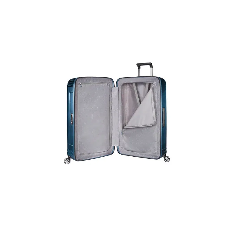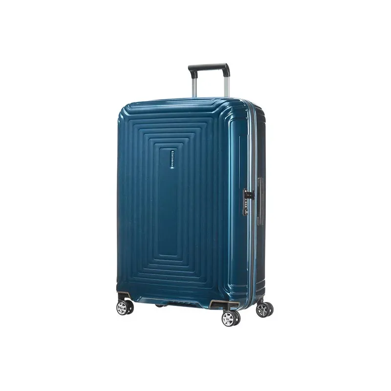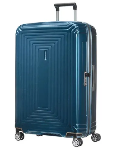 Trolley grande della linea Neopulse di Samsonite. Realizzata in 100 x 100 policarbonato con design autorinforzante(materiale resistentissimo e leggero).Il traino è con le 4 ruote per un trasporto maneggevole il design squadrato consente un eccezionale capienza,completa di chiusura con combinazione e TSA necessario per i viaggi in USA.