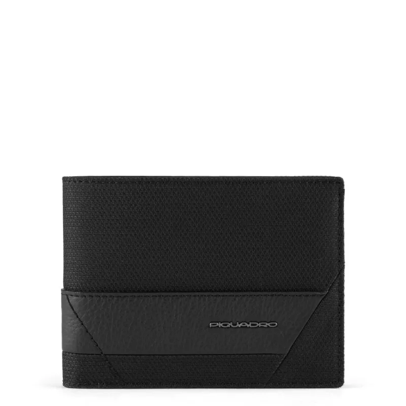 Herrengeldbörse aus der Piquadro Trakai Kollektion, aus Stoff und Leder, ausgestattet mit Münzfach, Dokumentenklappe, 7 Fächer für Kreditkarten.