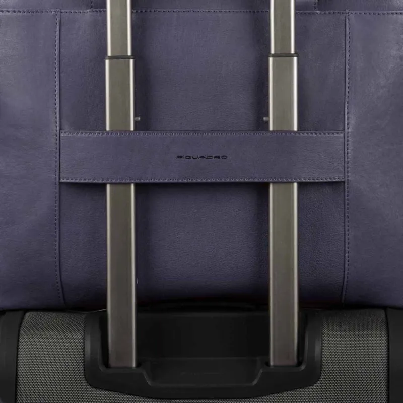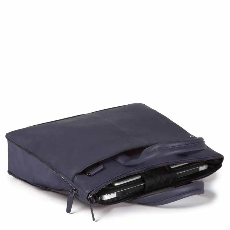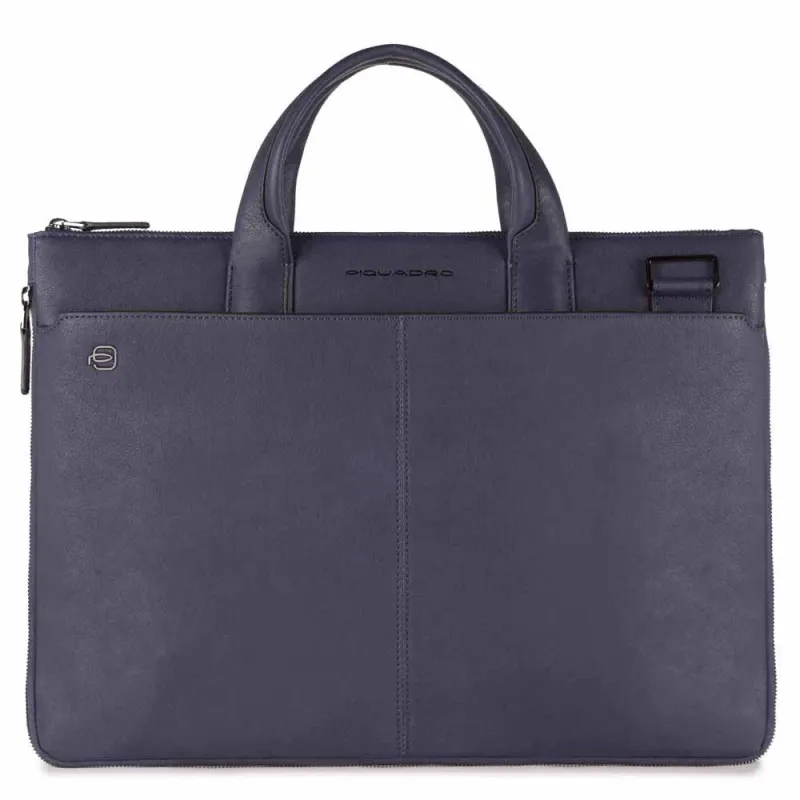 Aktentasche mit 2 Griffen und Schulterriemen aus der Black Square-Kollektion von Piquadro, mit Reißverschluss, erweiterbar, innen mit Spezialfach für 15,6"-Laptop, rückseitige Schlaufe zur Befestigung am Trolley.