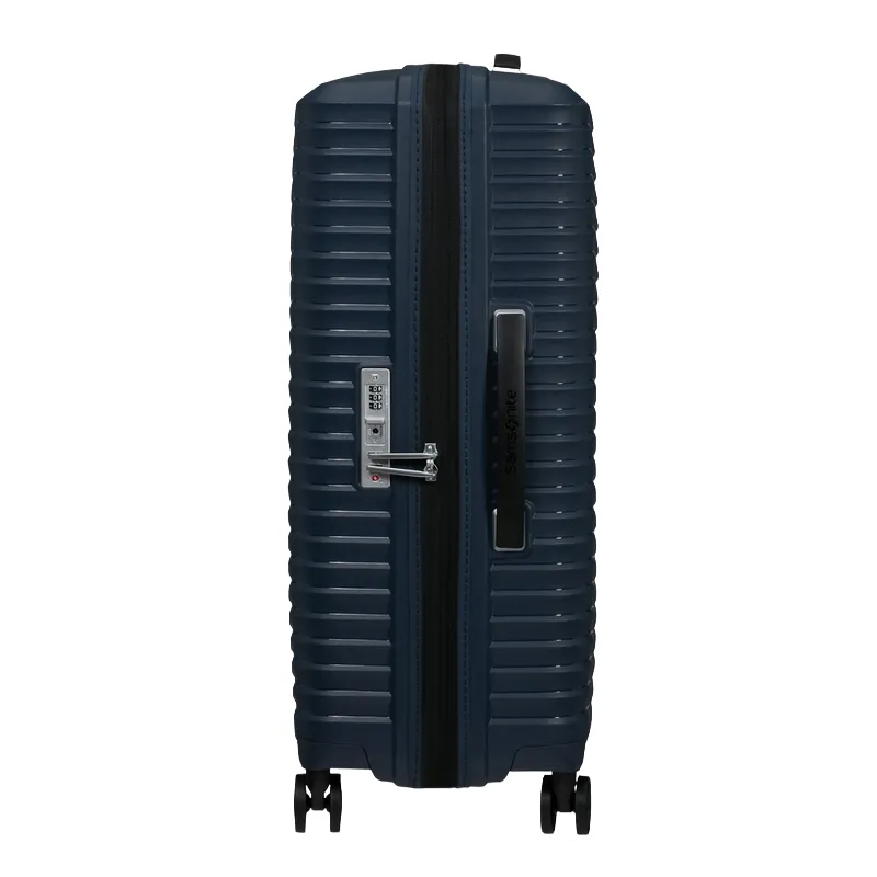 Leichter und strapazierfähiger mittelgroßer Trolley aus der Upscape-Kollektion von Samsonite, aus 100 % Polypropylen, ausgestattet mit Erweiterungsmöglichkeiten, Griffen an der Oberseite und an den Seiten, doppeltem Innenfach mit Trennwand und Befestigungsgurten, Reißverschluss, Kombinations- und TSA-Schloss für US-Reisen erforderlich, 4-Rad-Doppeltrolley-Zug.