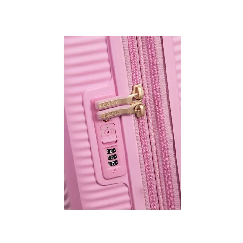 Großer Trolley aus der American Tourister Soundbox-Kollektion, hergestellt aus 100% Polypropylen (sehr widerstandsfähiges Material gegen niedrige und hohe Temperaturen), dank seiner rechteckigen Form und der Möglichkeit der Erweiterung ermöglicht er ein größeres Fassungsvermögen, die 4 drehbaren Räder garantieren eine einfache Handhabung, das Zahlenschloss ist komplett mit TSA für Reisen in die USA erforderlich.