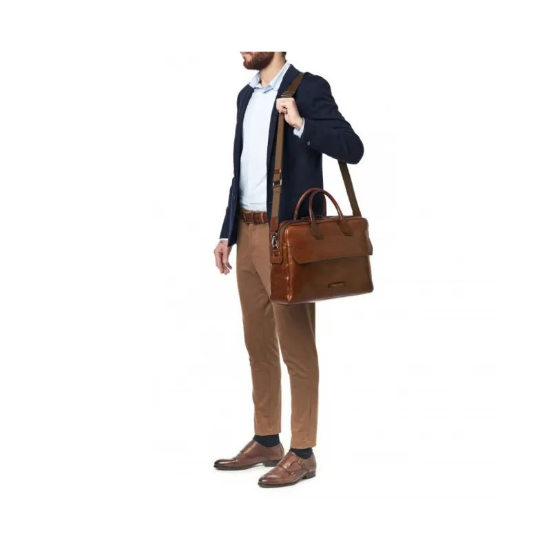 Aktentasche mit 2 Griffen, PC- und iPad-Fach, aus der Williamsburg-Kollektion von The Bridge, gekennzeichnet durch ein Doppelfach mit Reißverschluss, Möglichkeit einer hinteren Schultergurtschlaufe zur Befestigung am Trolley, Brillentasche, die perfekte Kombination aus Organisation und Qualität, aus feinem Naturleder.