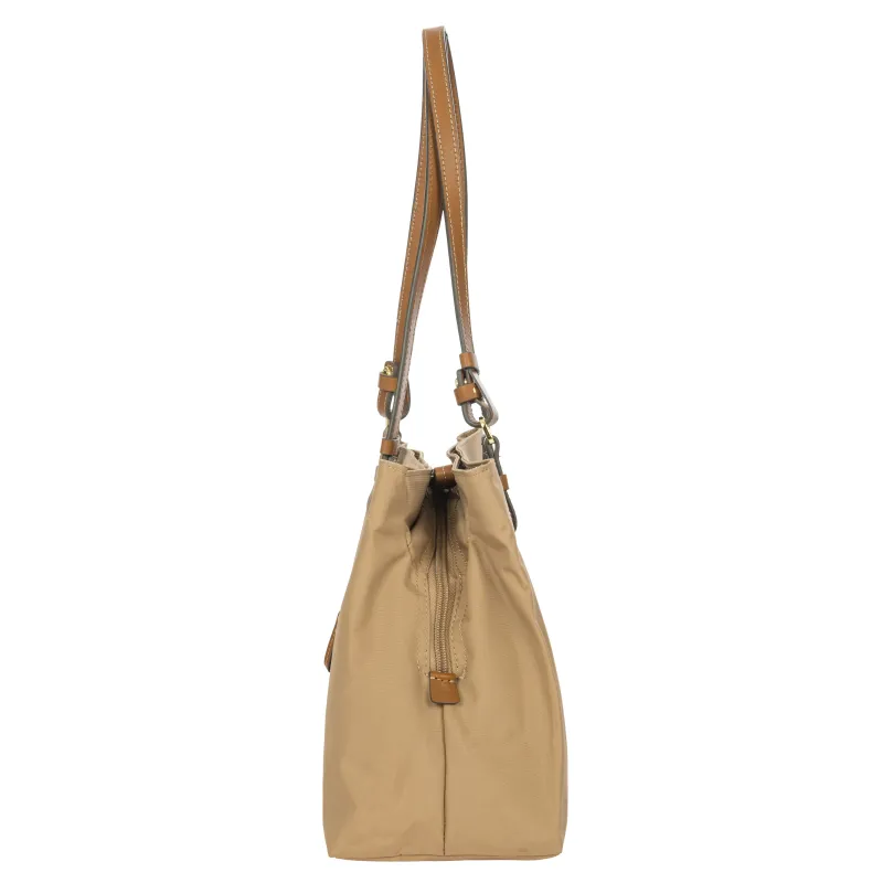 Brics Mittlere Einkaufstasche aus Stoff und Leder mit drei Fächern cappuccino