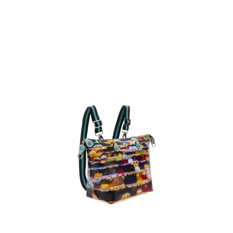 Borbonese Fold Rucksack Damen Recycelter Stoff & Leder, schwarz