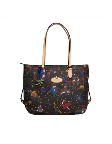 Mittlere Einkaufstasche aus der Magic Circus Kollektion von Piero Guidi, aus starkem geprägtem Stoff mit Lederdetails, ausgestattet mit einem großen Fach mit Reißverschluss.