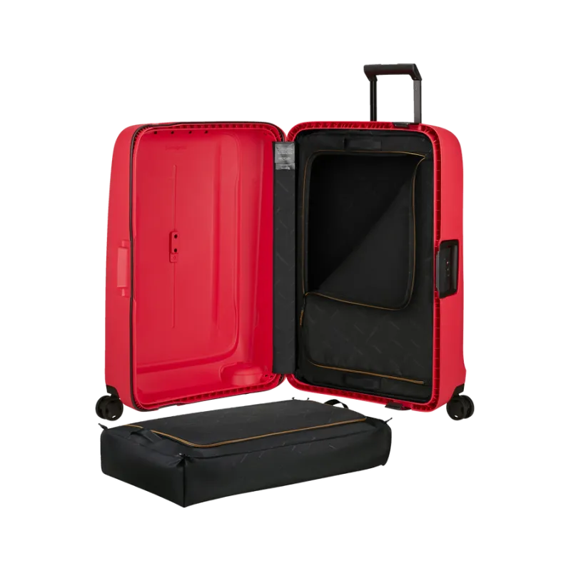 Die Essens-Kollektion von Samsonite ist vollständig umweltverträglich hergestellt. Die Schalen bestehen zu mindestens 70 % aus recyceltem post-consumer Polypropylen, Das Innenfutter und das innere Gurtband bestehen zu bzw. 97% & 100 % aus recyceltem PET.