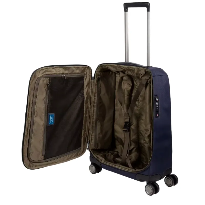 Piquadro Brief2 Trolley in Handgepäckgröße aus rezykliertem Stoff mit vier Rollen, blau