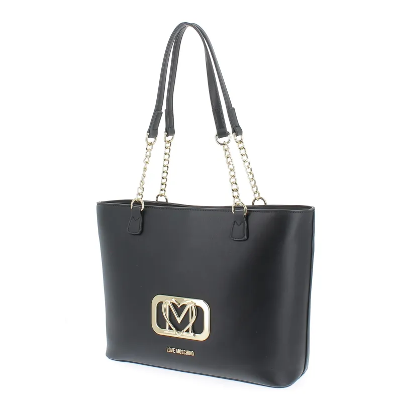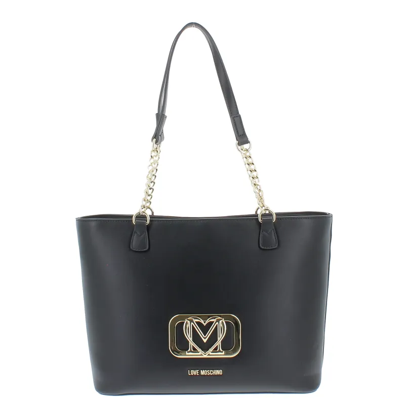 Love Moschino Damen-Einkaufstasche mit Metall-Logo, schwarz