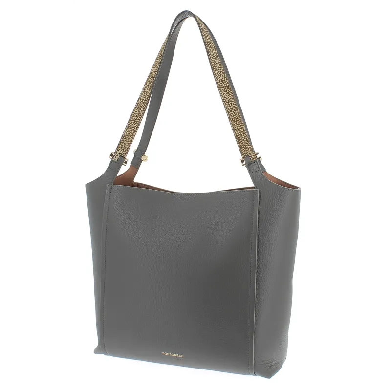 Borbonese Fold Rucksack Damen Recycelter Stoff & Leder, schwarz