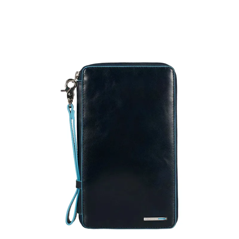 Reiseaktentasche aus Leder der Kollektion Blue Square von Piquadro, mit Reißverschluss, abnehmbarer Multifunktionstasche im Inneren, 14 Kreditkartenfächern und Stifthalter.