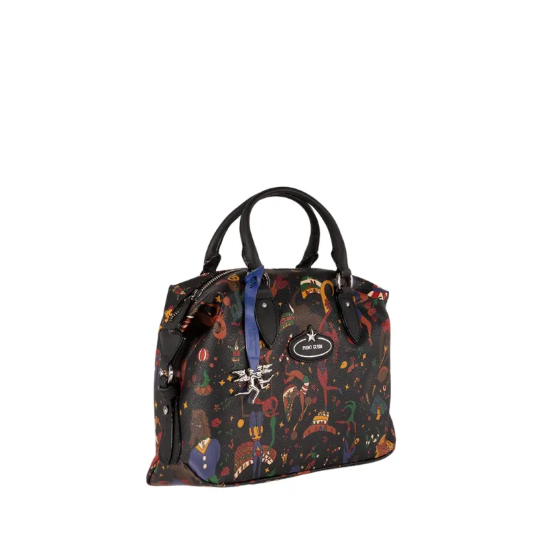 Borbonese Fold Rucksack Damen Recycelter Stoff & Leder, schwarz