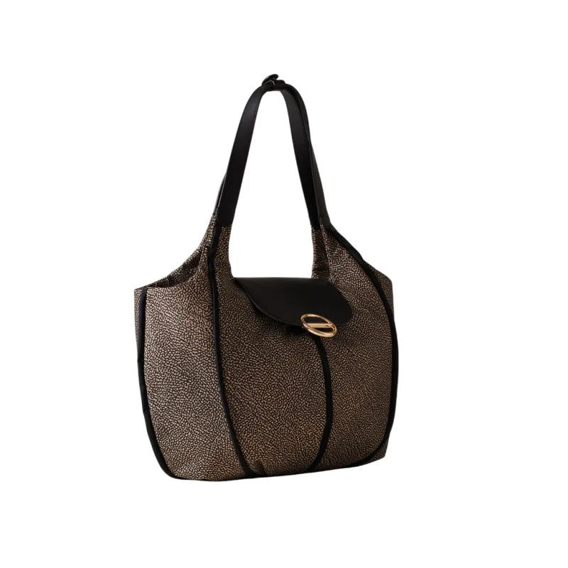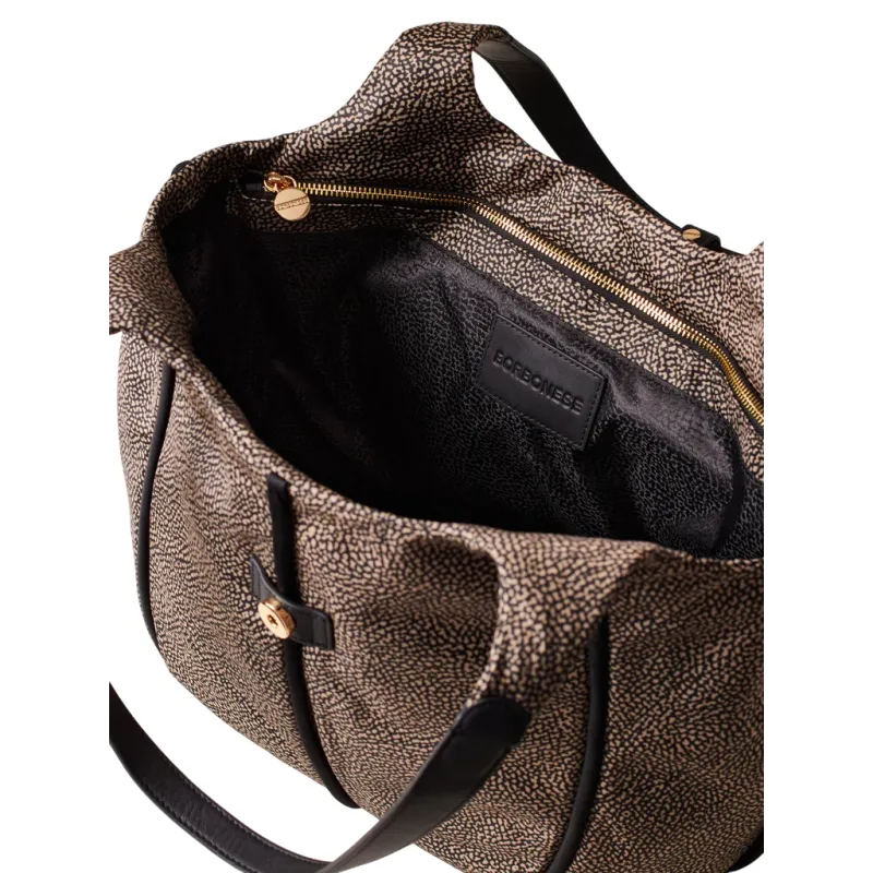Borbonese Cottage Medium Shopper aus recyceltem Stoff und Leder