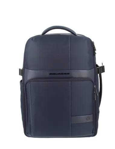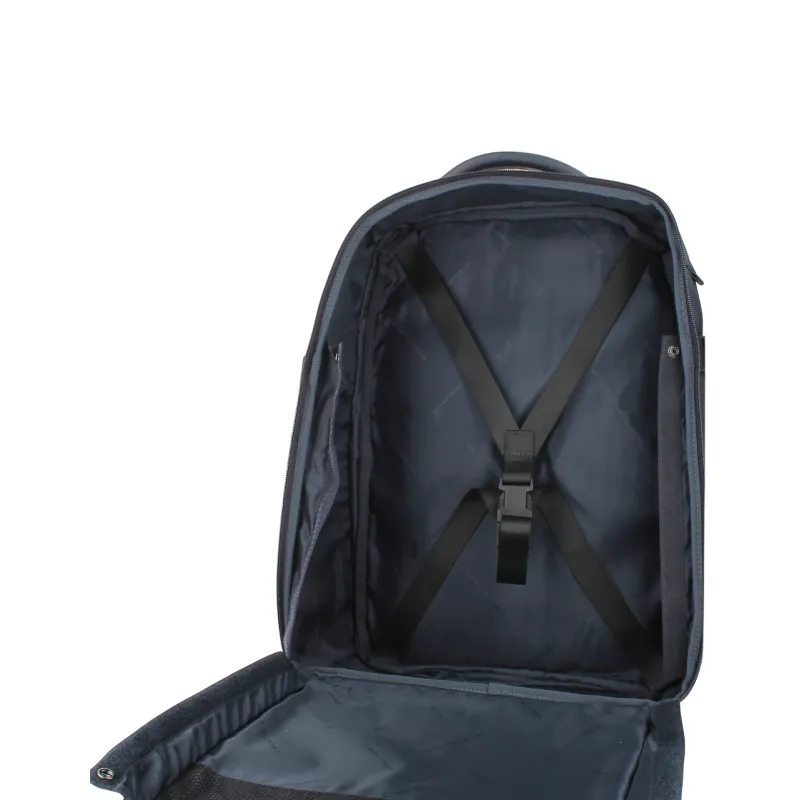 Piquadro Wollem Reiserucksack aus Stoff und Leder, blau