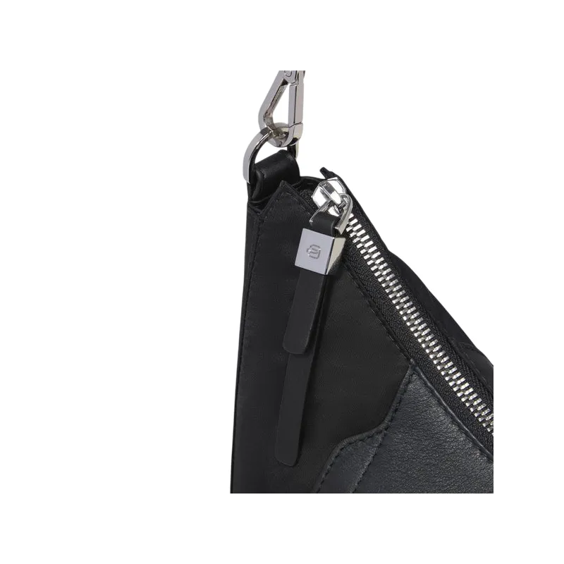 Piquadro Circle kleine Umhängetasche aus Stoff und Leder, schwarz