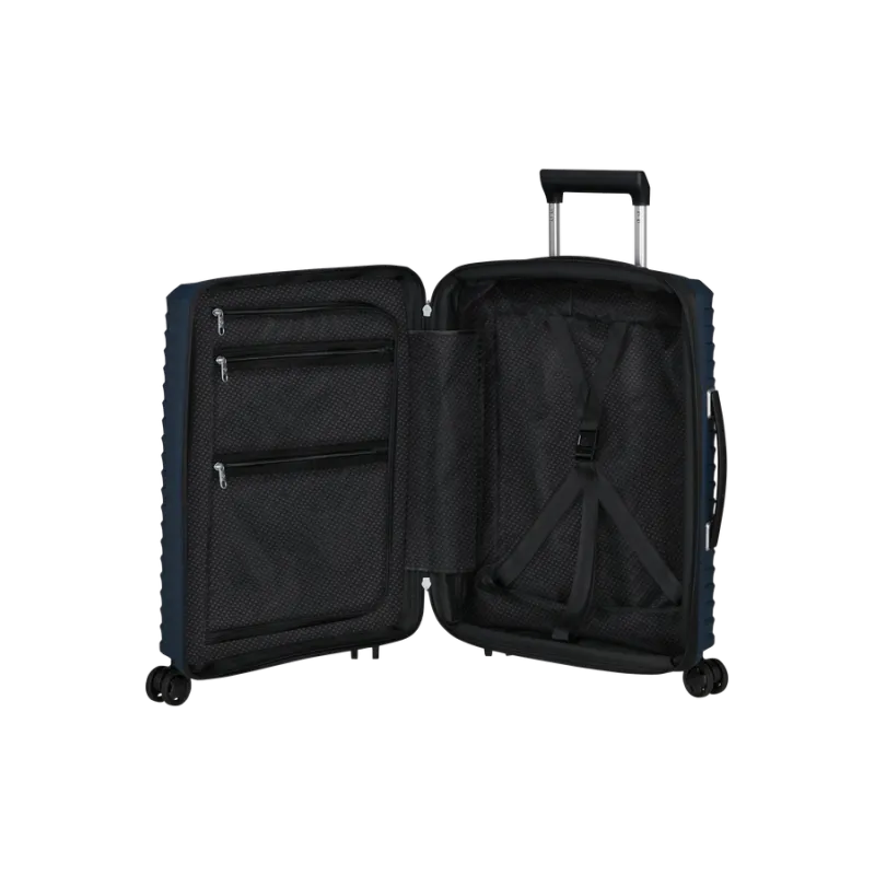 The Samsonite Upscape cabin trolley is the perfect choice for travelers seeking a lightweight, durable, and comfortable carry-on suitcase with modern functionality.