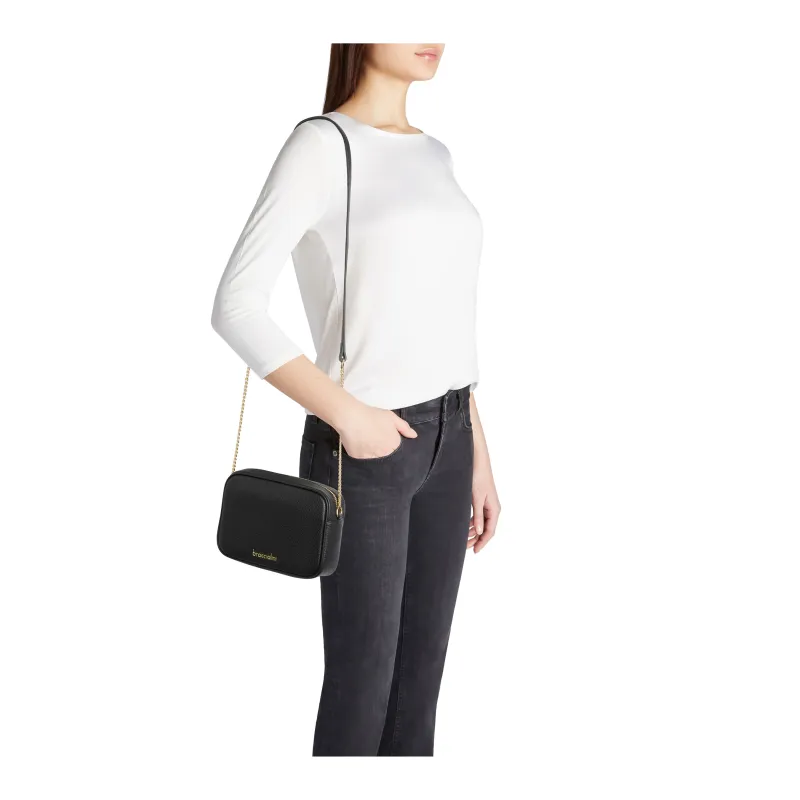 Braccialini Jinny Leather Crossbody Bag, Minimal & Elegant Design, black