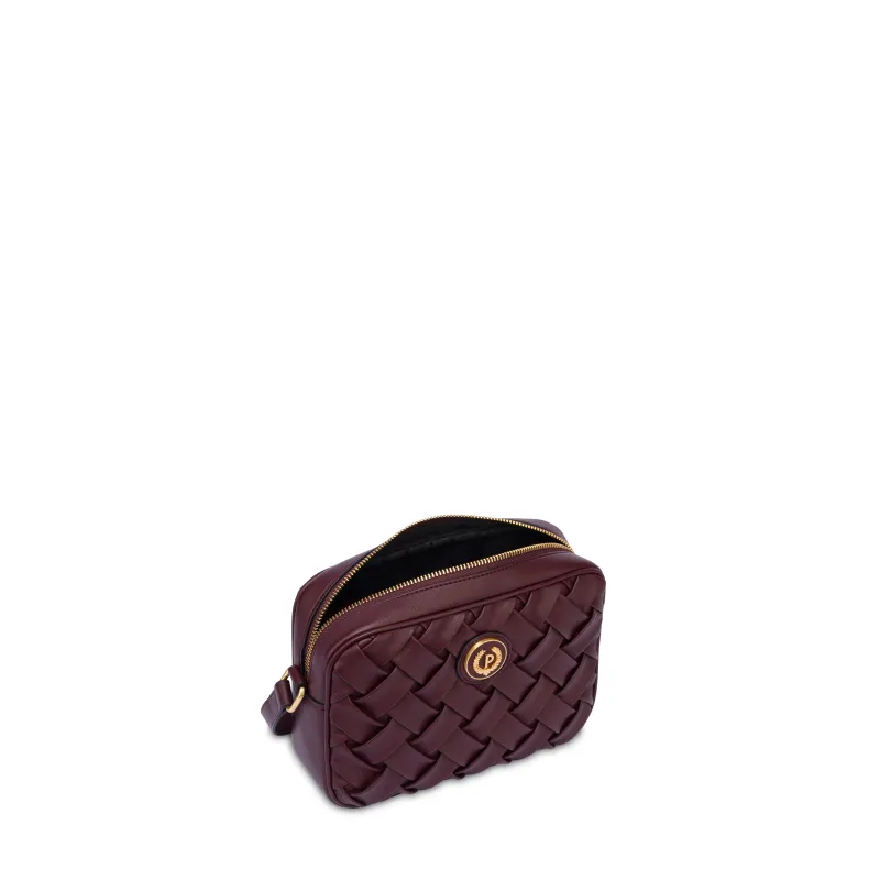 The Pollini Interlace camera bag embodies contemporary elegance, featuring a refined pleated interlace workmanship that creates a soft and unique texture. Crafted from soft plain PU, it is enriched with a central P Alloro logo plaque and satin light gold metal accents, the new seasonal detail that adds a discreet touch of luxury. Compact and functional, this bag is ideal for those who seek both style and practicality in a distinctive and modern accessory.