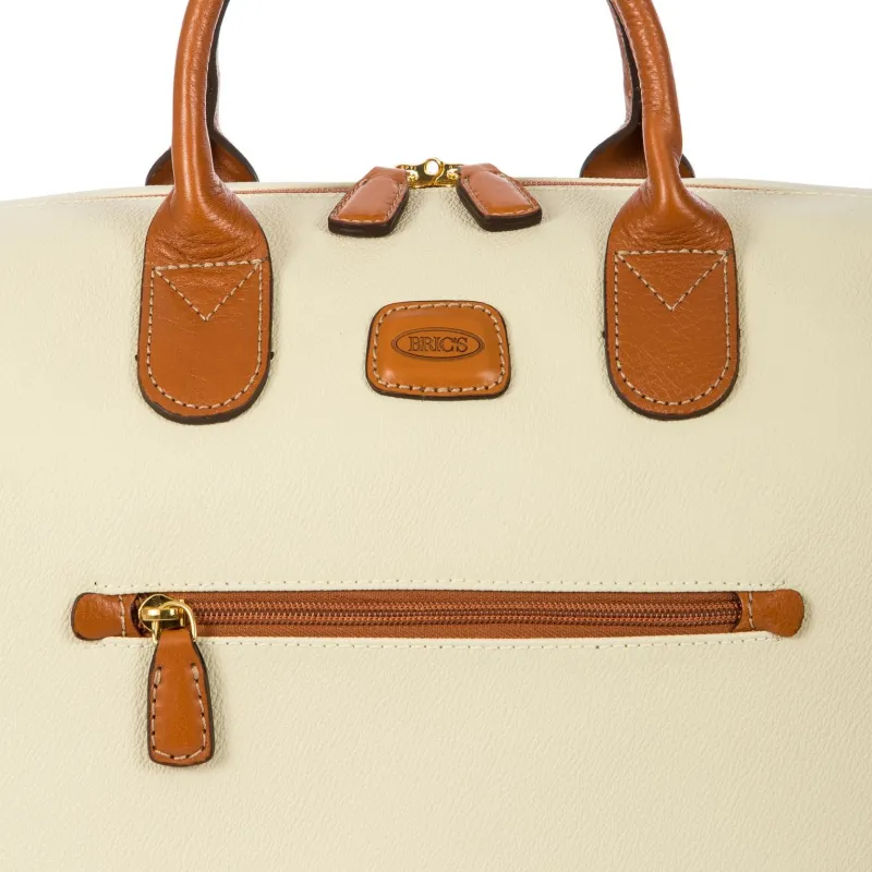 Borsone 2 manici apertura con cerniera completo di tracolla regolabile tasca frontale con cerniera e passante posteriore per aggancio al trolley. Dimensioni: 43 x 28 x 19 cm (consentito come bagaglio a mano) Peso: 1 2 kg Il design iconico della collezione Firenze di Bric's non ha eguali.L'eleganza senza tempo dal sapore retro' si combina a dettagli funzionali.Realizzata in tessuto goffrato(materiale particolarmente resistente e lavabile) e finito in pelle naturale conciata al vegetale.