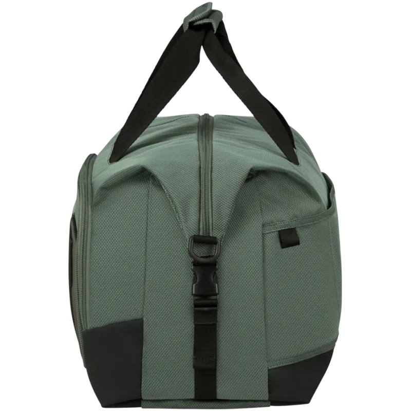 Cabin duffle bag from Samsonite's Respark collection, made entirely from recycled materials, equipped with two handles, zip closure, adjustable and removable shoulder strap, rear trolley attachment loop.